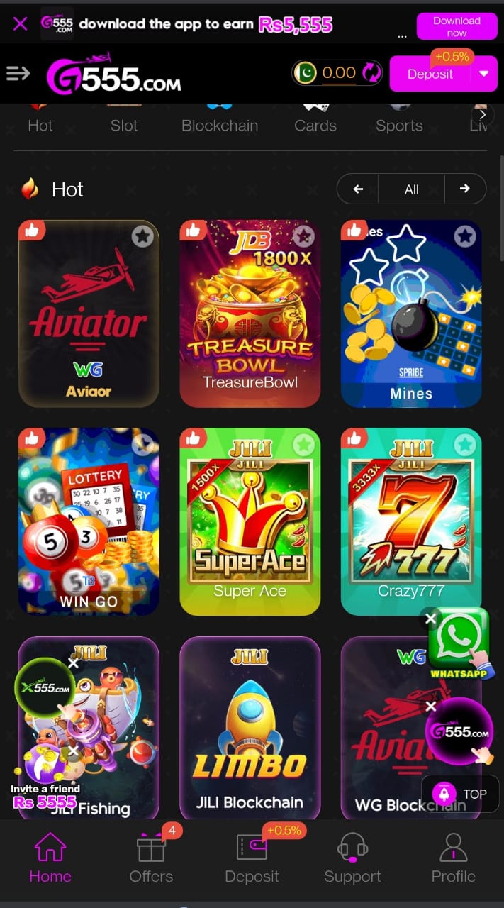 Players can invite friends to join G555 online and earn commission from their friends’ gameplay. This feature makes the platform not just a gaming app but also a passive earning opportunity. - 24/7 Customer Support