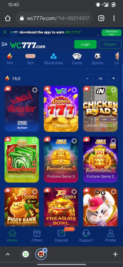 The WC777 Game is an online gaming application where users can enjoy different small games. These games are created to be fast, simple, and enjoyable. The platform focuses on easy navigation so that users can quickly get to the game they want to play.